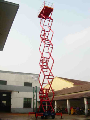 剪叉式高空作業臺是用途廣泛的高空作業專用設備。它的剪叉式機械結構,使升降臺起升后有較高的穩定性,